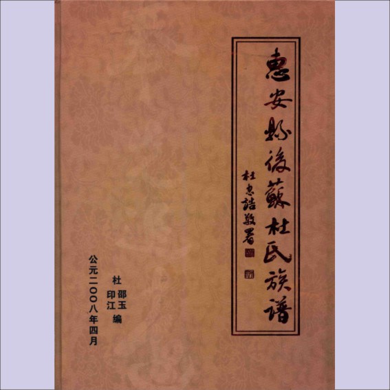杜-福建泉州-惠安县后苏杜氏2008版《惠安县后苏杜氏族谱》:杜邵玉、杜印江主编 ...