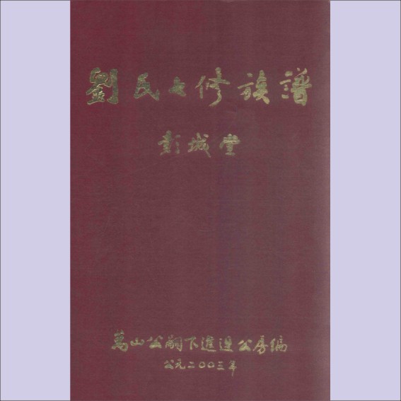 藏品名称:刘-湖南长沙-宁乡市黄材镇横市老粮仓刘氏2003版《刘氏七修族谱》:万山公嗣下进迓公房谱,彭城堂梓行