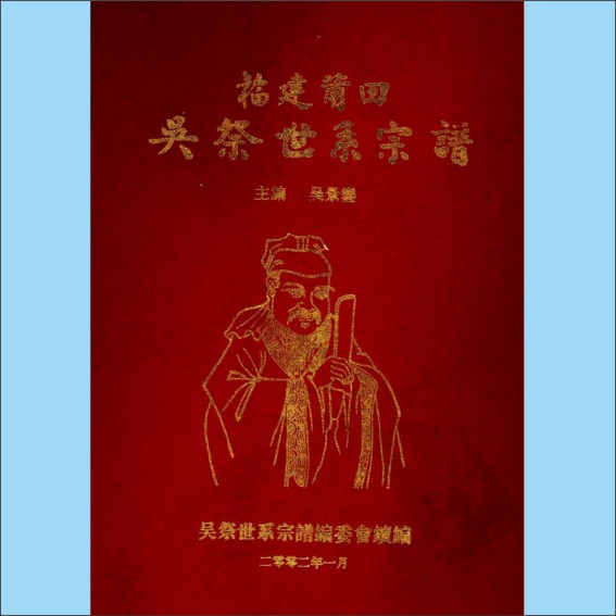 藏品名称:吴-福建莆田-荔城区黄石镇水南村吴氏2002版《吴祭世系宗谱》:吴景銮主编,入闽始祖吴祭公(字孝先,号
