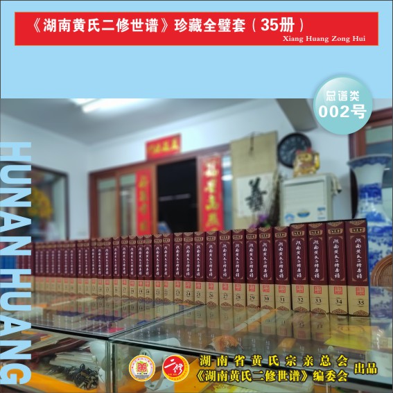 《湖南黄氏二修世谱》(珍藏全璧本):共计35部,本谱是在完成全省18套市县总谱的基础上,蒐集而成的全省