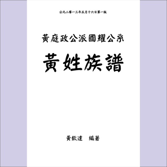 藏品名称:黄-台湾-台中市外埔区铁砧山黄氏2013版《黄姓族谱》:福建邵武黄氏峭山-井公-庭政-国耀公位下谱,本宗原乡