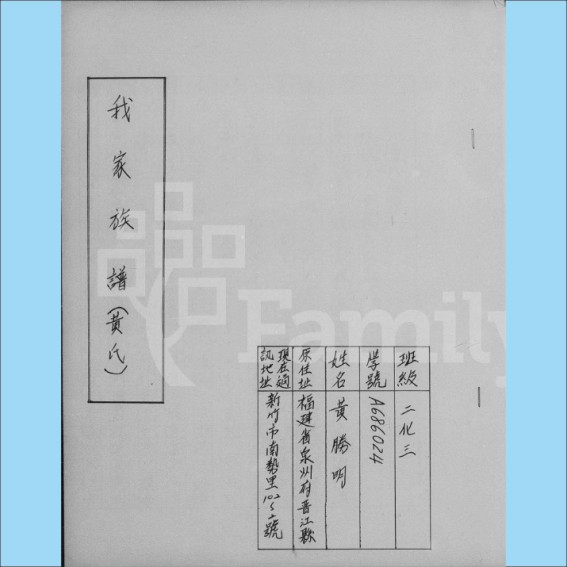 藏品名称:黄-台湾-苗栗县西山黄氏1980版《我家族谱》:上溯福建省泉州府晋江市西门外,渡台祖十七世庆福公,于清乾