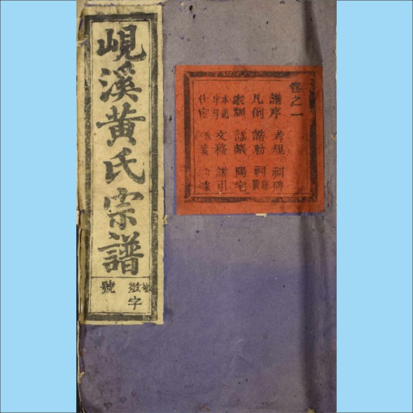 藏品名称:黄-浙江金华-东阳市岘溪黄氏1929版《岘溪黄氏宗谱》:江西分宁双井黄氏玘公位下谱,上溯义乌洞门黄氏昉公
