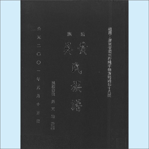 吴-广东潮州-饶平县黄岗镇过都十八崁吴氏2001版《后旗黄吴氏族谱》:一名《吴黄宗族谱》。吴加令无出,领
