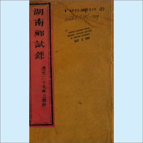 湖南科举《湖南乡试录》(道光二十九年己酉科):道光二十九年即1849年,这一年湖南乡试的解元是善化县