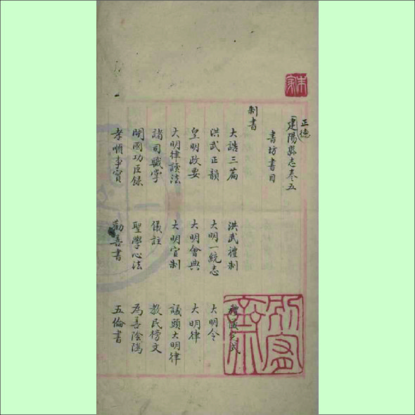 建阳县志书坊书目:正德《建阳县志》书坊书目1册,天一阁藏本(另种)