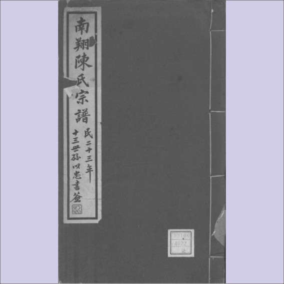 藏品名称:陈-上海嘉定-嘉定区南翔陈氏1934版《南翔陈氏宗谱》:民国二十三年永誉堂梓行,陈家栋纂修。始迁祖西溪公