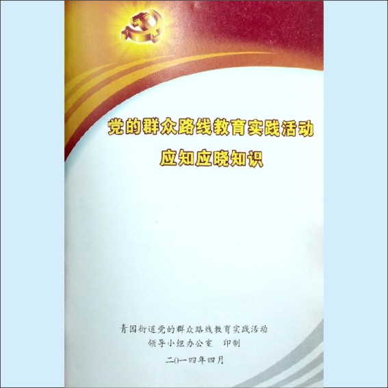 藏品名称:党建指导《党的群众路线教育实践活动应知应晓知识》:青园街道党的群众路线教育实践活动领导小组办公室
