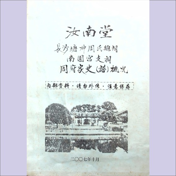周-湖南长沙-望城区杨桥塘冲周氏2007版《周府家史(谱)概况》:汝南堂南园宫支 ...