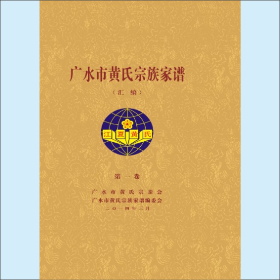 藏品名称:黄-湖北随州-广水市黄氏2014版《广水市黄氏宗谱》(汇编):广水市黄氏各宗支合修谱,广水市黄氏宗亲会