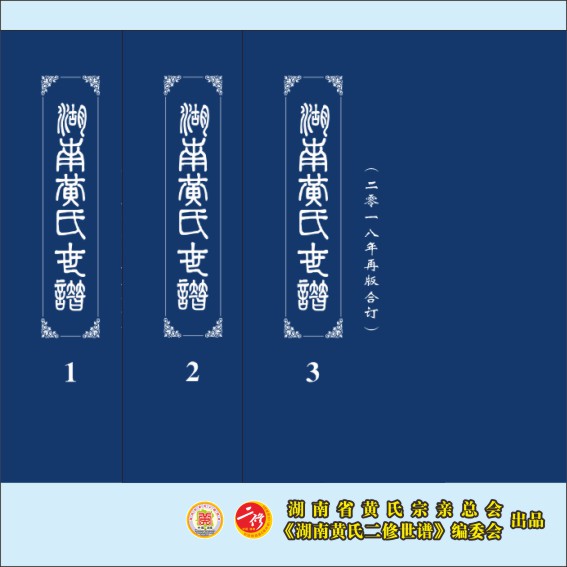 藏品名称:《湖南黄氏世谱》(重印精装合订本):2018重印本,全套3册,共计2616P,古竖版版式,大16(A4)开本,锁
