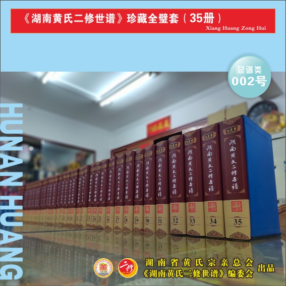 《湖南黄氏二修世谱》(珍藏全璧本):共计35部,本谱是在完成全省18套市县总谱的基础上,蒐集而成的全省