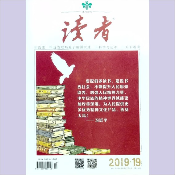 文摘杂志《读者》:2019年第19期(10月上),总第696期,常务副社长、副总 ...