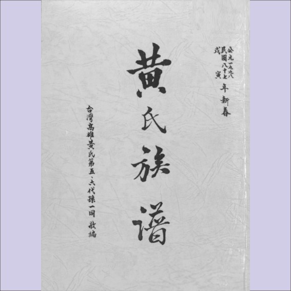 藏品名称:黄-台湾-高雄市集集镇旗后黄氏1998版《黄氏族谱》:本宗上溯广东潮州(后改为潮安)饶平,再上溯福建漳州