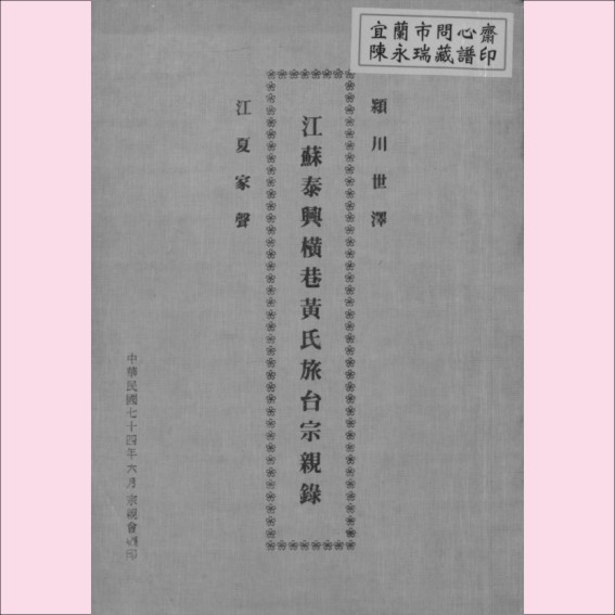 黄-江苏泰州-泰兴市横巷黄氏1985版《颍川世泽 江夏家声:江苏泰兴横巷黄氏族 ...