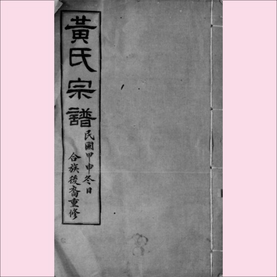 藏品名称:黄-江苏无锡-锡山区锡北镇斗山黄氏1944版《黄氏宗谱》:七修,始祖廖广宁公,本江右名族,原籍江西临江府