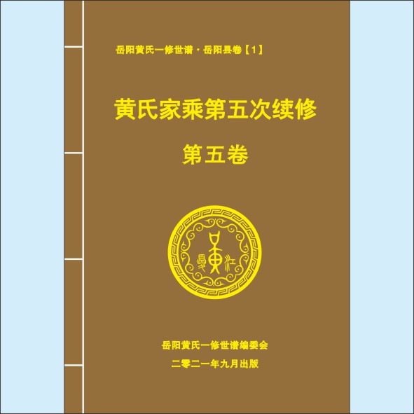 藏品名称:黄-湖南岳阳-岳阳大源冲黄氏2021版《黄氏家乘》:上溯江西丰城沇江黄氏瑕公。始迁祖兴治公(字文政)