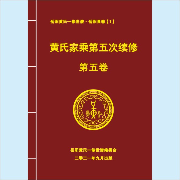 藏品名称:黄-湖南岳阳-岳阳撒花山黄氏2021版《黄氏家乘》:上溯江西分宁双井黄氏玘公、平江九峰黄氏朝汶公。先祖