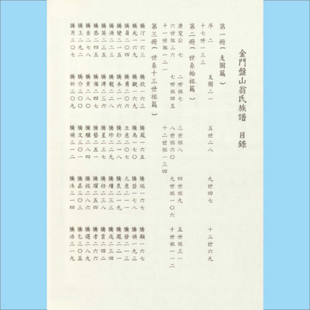 翁-台湾金门县盘山翁氏2000版《金门盘山翁氏族谱》