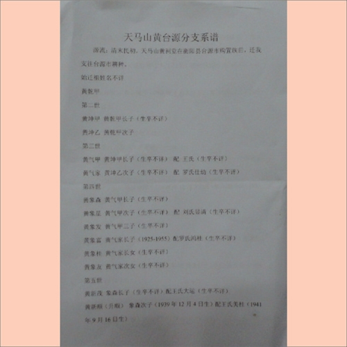 黄-湖南衡阳县天马山黄氏2016版《天马山黄台源分支系谱》:简谱1册